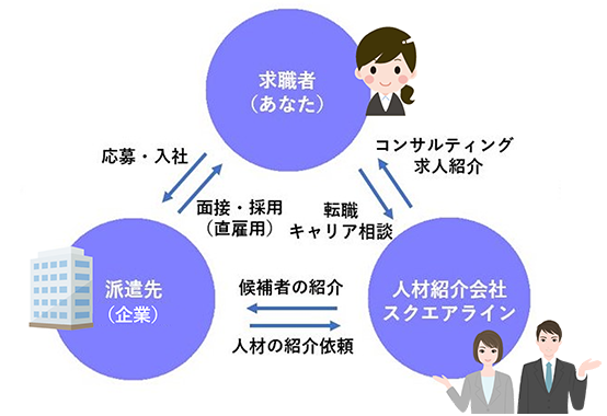 派遣会社(スクエアライン)との間に雇用契約が結ばれます。